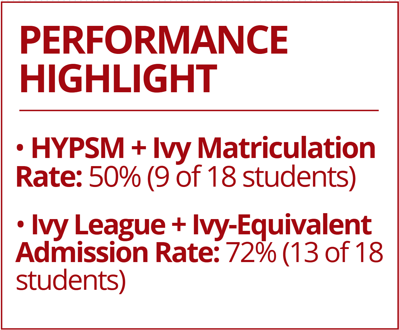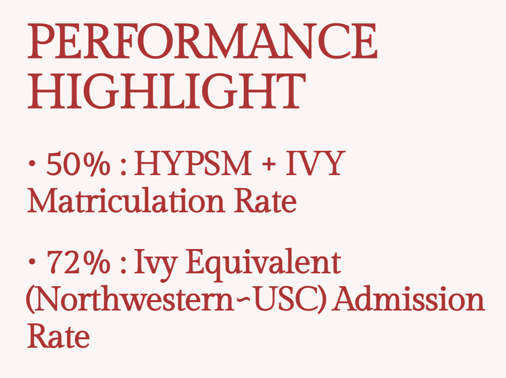 an incomparable ivy acceptance rate and placements at Harvard, Stanford, Princeton, and others.