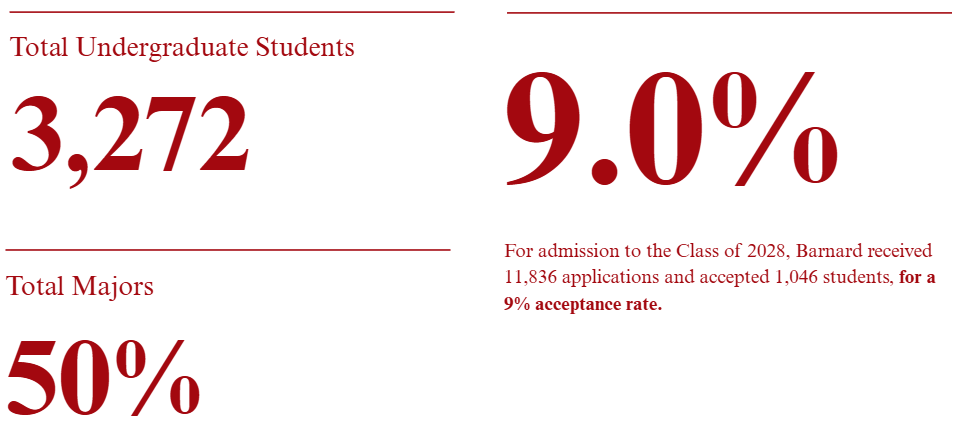 Barnard remains one of the most competitive members of the Seven Sisters, with single-digit acceptance rates in recent years. For admission to the Class of 2028, Barnard received 11,836 applications and accepted 1,046 students, for a 9% acceptance rate. As of 2015, Barnard admits transgender applicants who “consistently live and identify as women.” As with any liberal arts college, and especially one with a history of committing to the advancement of womankind, Barnard values applicants who understand its unique history and the particulars of its culture. If you can’t imagine yourself anywhere else and want to give your application that competitive edge, OPUS has you covered!