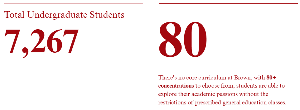 Perhaps the most distinctive feature of undergraduate academics at Brown is the “Open Curriculum,” which was put into place in 1969 in order to expand intellectual freedom and agency for college students. No shared coursework is required, but according to Brown’s website, “most undergraduates sample courses in a range of subjects before diving into one of 80-plus academic concentrations for in-depth, focused study.” While some may interpret the freedom inherent to the Open Curriculum as lacking in rigor, most students agree that it encourages them to break away from their comfort zones and explore their true passions.